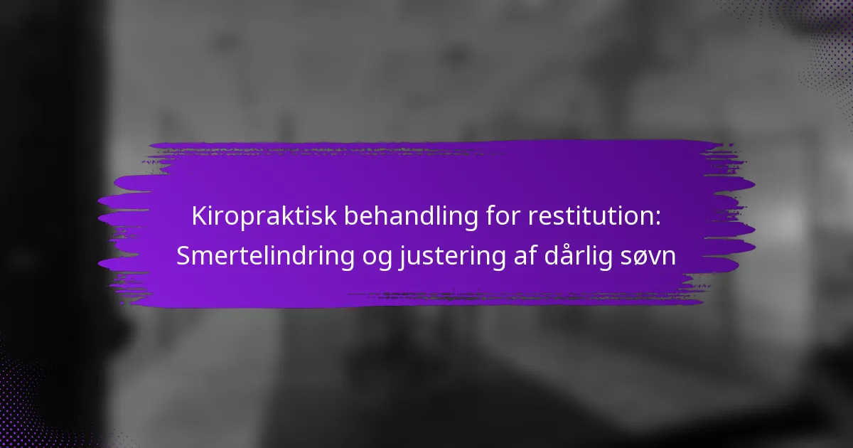 Kiropaktisk behandling er en holistisk tilgang, der fokuserer på at diagnosticere og behandle muskel-skeletlidelser, primært gennem manuelle justeringer. Det spiller en væsentlig rolle i genopretning ved at lindre smerte og korrigere justeringsproblemer, hvilket kan forbedre det generelle velvære og søvnkvaliteten.