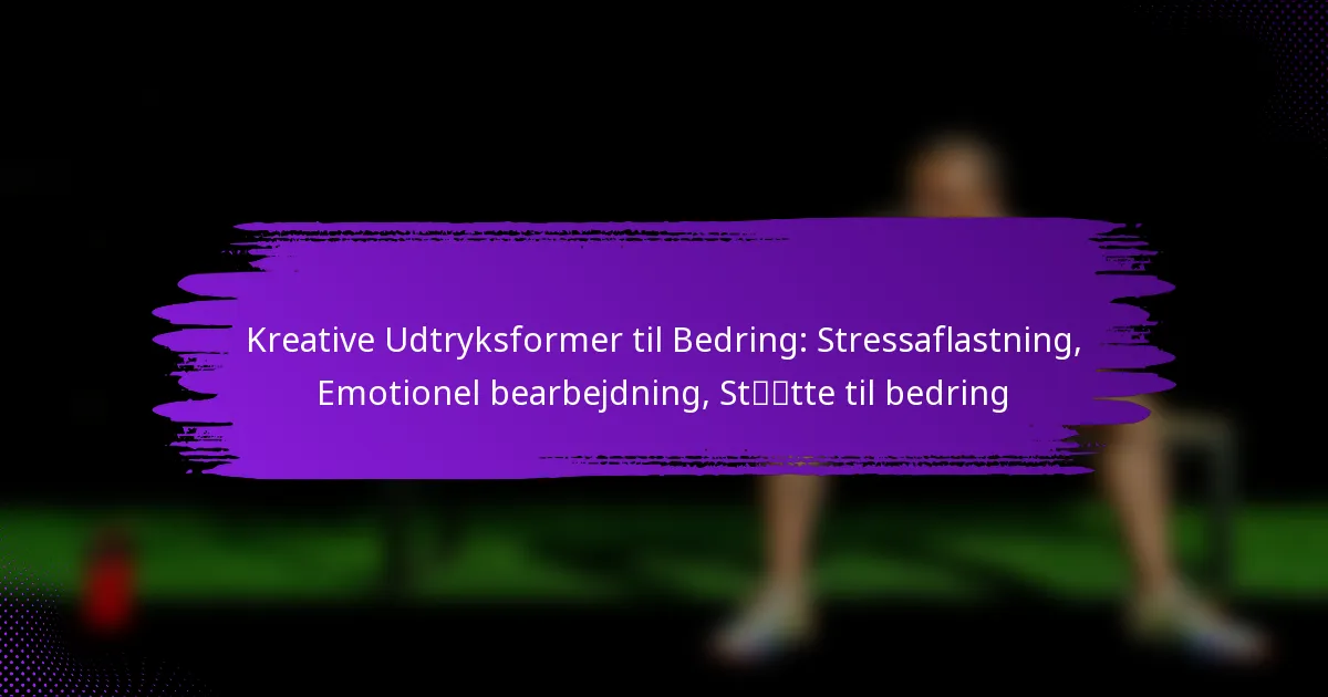 Kreative udtryksformer til recovery er aktiviteter, der giver enkeltpersoner mulighed for at udtrykke sig kunstnerisk, hvilket hjælper med at bearbejde følelser og lindre stress. At engagere sig i kreative sysler kan fremme personlig vækst, forbedre følelsesmæssigt velvære og give et støttende miljø for recovery.