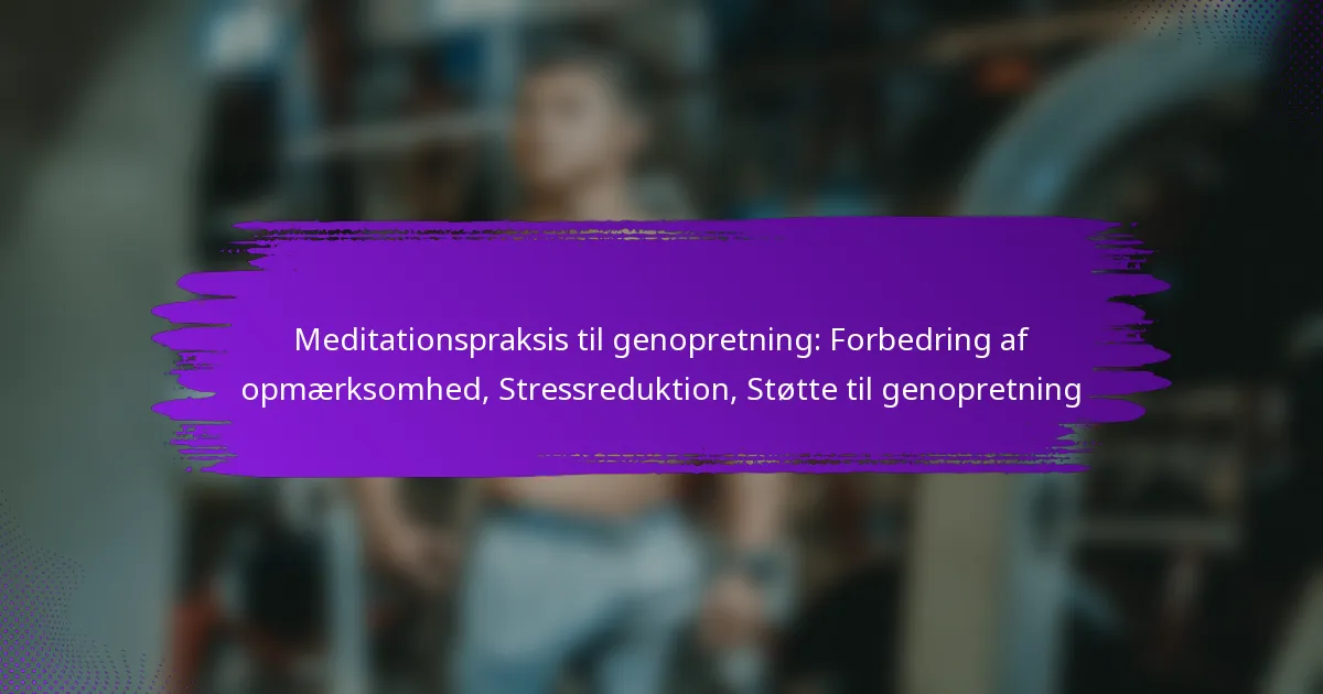 Vigtige meditationspraksisser for genopretning fokuserer på at forbedre opmærksomhed, reducere stress og støtte det generelle velvære. Teknikker som mindfulness-meditation, guidet visualisering, kropsscanning, transcendental meditation og åndedrætsøvelser kan betydeligt hjælpe i den følelsesmæssige og fysiske genopretning.